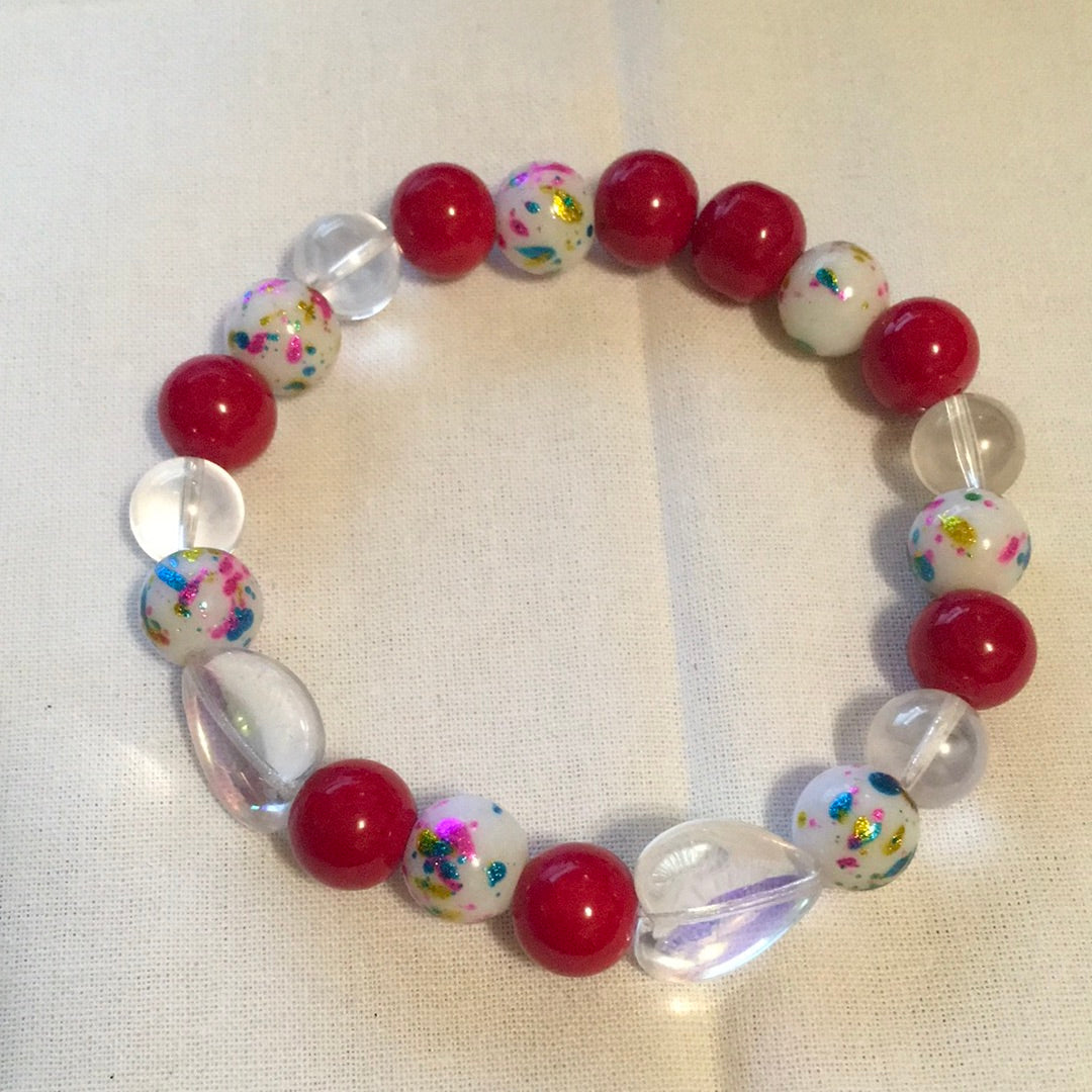Clear Hearts w/Red, Clear & Mix White Beads Bracelet