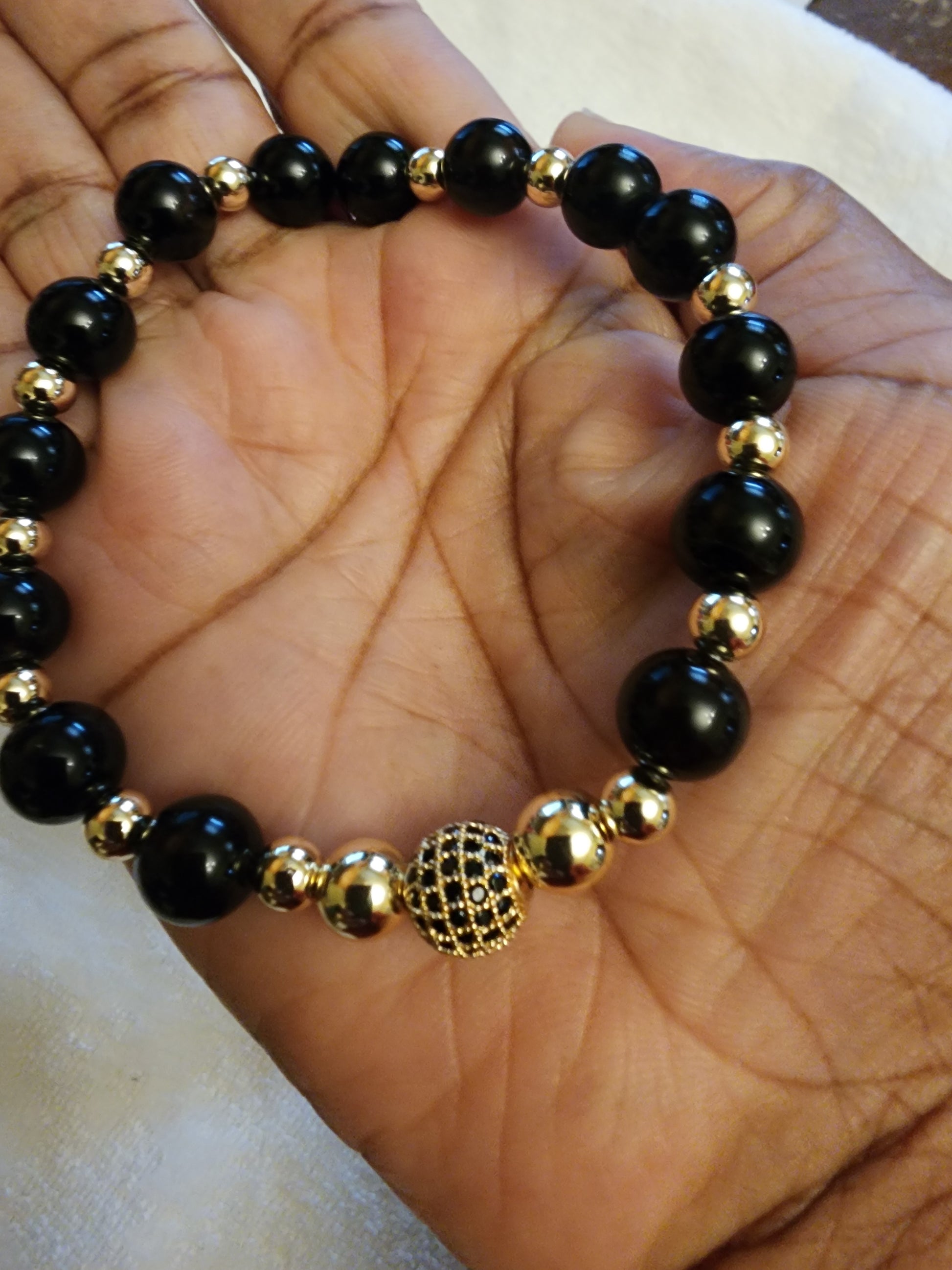Gold-Filled & Black Onyx Beaded Bracelet (1)