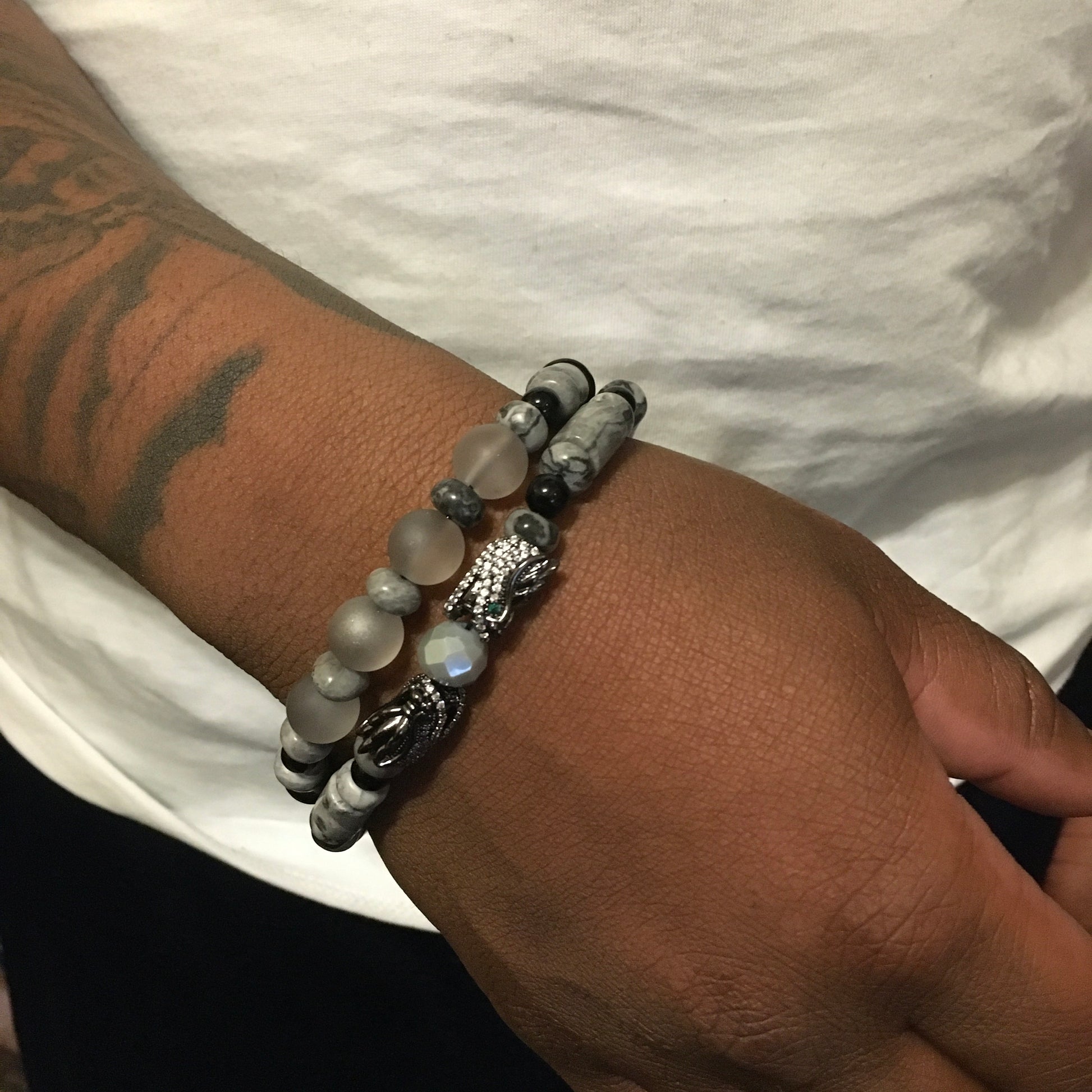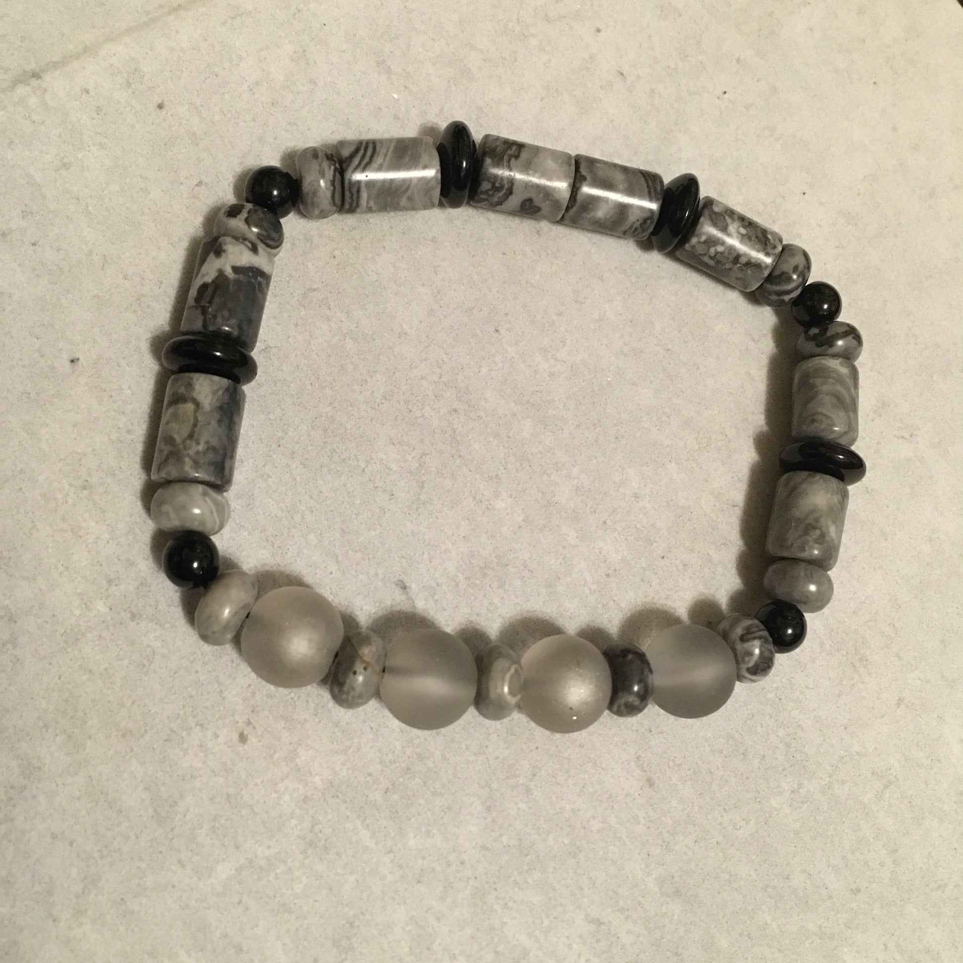 Gemstone: Grey Stone & Grey Glass beads
