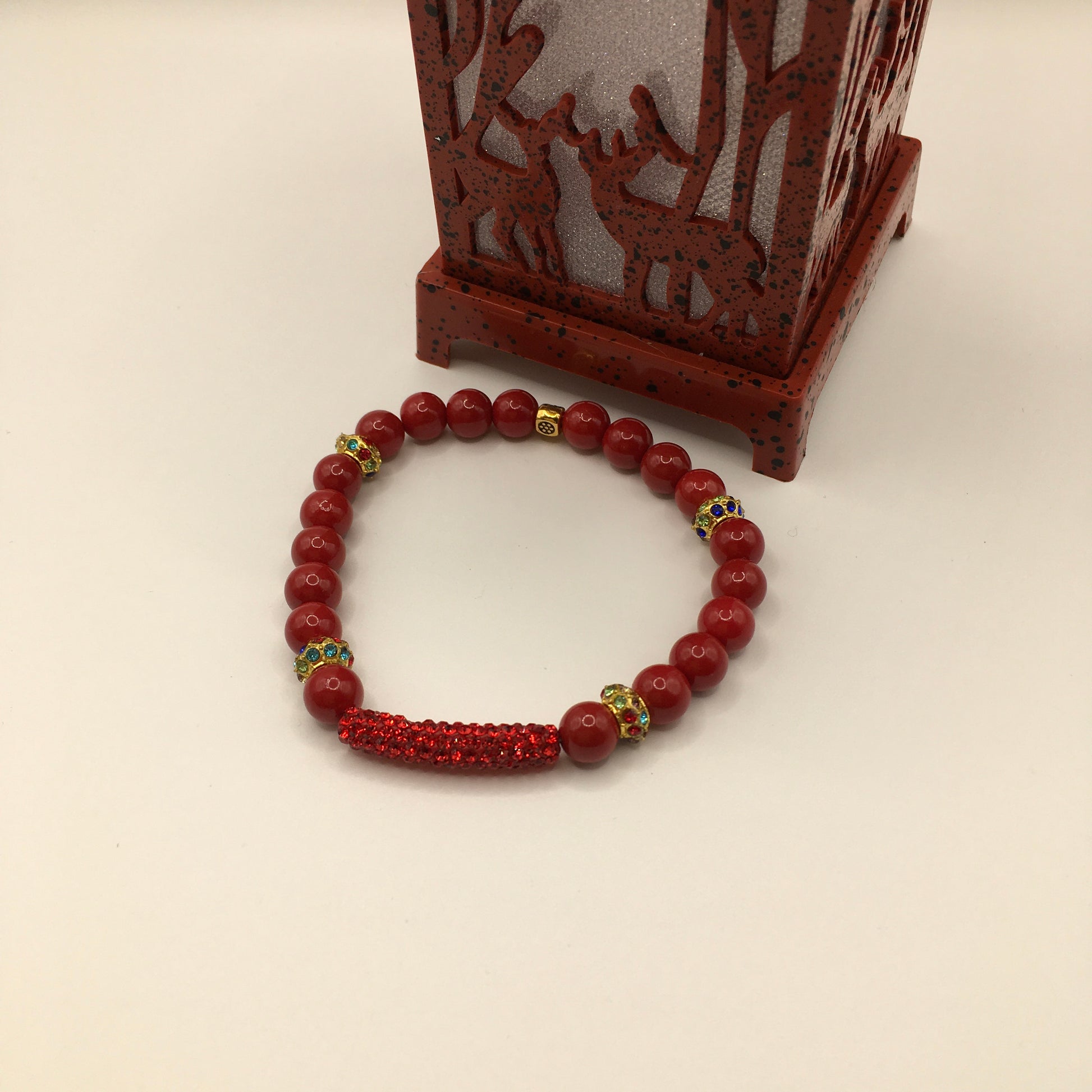 Accent/Charms: Red Rhinestone bar & Rainbow gold bling Accent